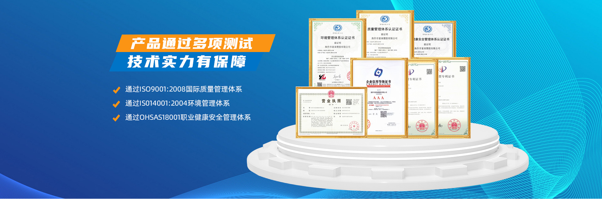 - 焦作市富泉塑膠有限公司,創立于1995年,是一家集研發、設計、生產、銷售為一體的大型管材企業。公司位于太極故里、黃河之濱一一河南焦作溫縣。公司占地128畝,現有職工210余人,其中具有中技術職稱的19人。生產、檢驗設備58臺(套),包括PVC實壁管生產線11套、PE實壁管生產線12套、HDPE雙壁波紋管生產線6套、PVC雙壁波紋管生產線5套,檢驗設備14臺(套)。主要產品有:Φ20mm-630mm、各種壓力規格的PVCU、PVC-M、PE給水管材,PVC-U節水灌溉管材,HDPE燃氣和礦用管材,DN200-800mm的HDPE、PVC雙壁波紋管及各種噴灌、滴灌工程材料。承接大中型市政供排水、飲水安全及節水灌溉等工程?! 「蝗苣z公司重視產品的質量、安全、環保和節能,在同行業中率先完成了“新華節水產品認證”,全方面通過ISO9001:2008國際質量管理體系、IS014001:2004環境管理體系和OHSAS18001職業健康安全管理體系的一體化導入,并建立起規范的現代企業管理體系。公司以“質量”為先導,采用質量跟蹤、多環節把關的方法,組建具有行業水準的企業技術檢測中心,常年委托水利部節水灌溉設備檢測中心、河南省產品質量監督檢驗院對產品跟蹤檢測,并由中國人民保險公司承保產品質量。公司連續多年被河南省水利廳確定為“安全飲水設備、節水灌溉設備”定點生產企業,并獲得“中國名優產品”“質量、服務、信譽AAA企業”“河南省**產品”“河南省水利企業”“河南省守合同、重信用企業”等榮譽稱號。 富泉塑膠公司堅持“用戶為上”的服務理念,長期以來,全方面關注客戶價值,不斷提升服務水平。服務隊伍常年為客戶的產品設計、施工、安裝提供合理的方案和全程細致、周到、**、快捷的技術服務。公司自成立以來,一直堅持以人為本的宗旨,塑造企業形象,并致力于新產品的開發,憑借雄厚的技術開發能力,先進的工藝制造流程,嚴格的質量管理保證體系,優良的售后服務網絡,已成為河南省大的飲水、灌溉及排水管材設備制造商。產品暢銷全國,而且還以公司雄厚的綜合實力在業界中占據著重要的地位。
